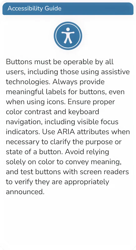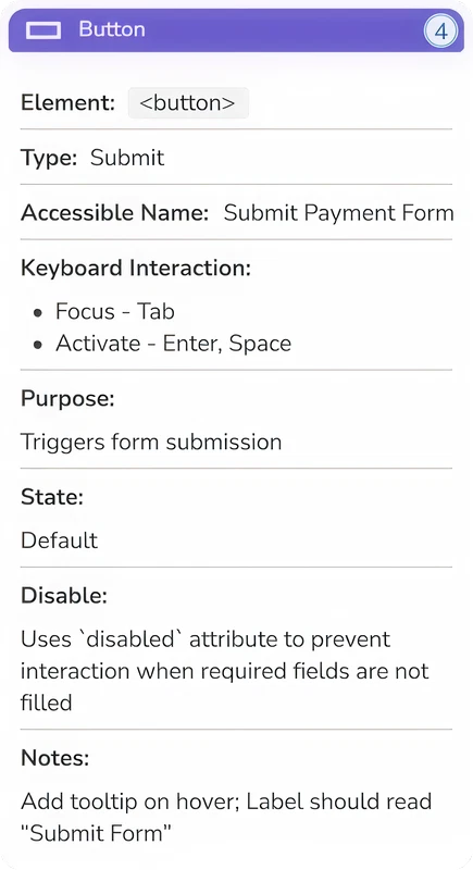 Accessibility is thoughtfully integrated throughout the system. Care has been taken to ensure accessible color contrast, keyboard-friendly interactions, and inclusion of key ARIA attributes where relevant. For components that require further implementation details, guidance and documentation are provided—empowering teams to design and build with greater inclusion in mind. The system includes a built-in accessibility annotation kit.