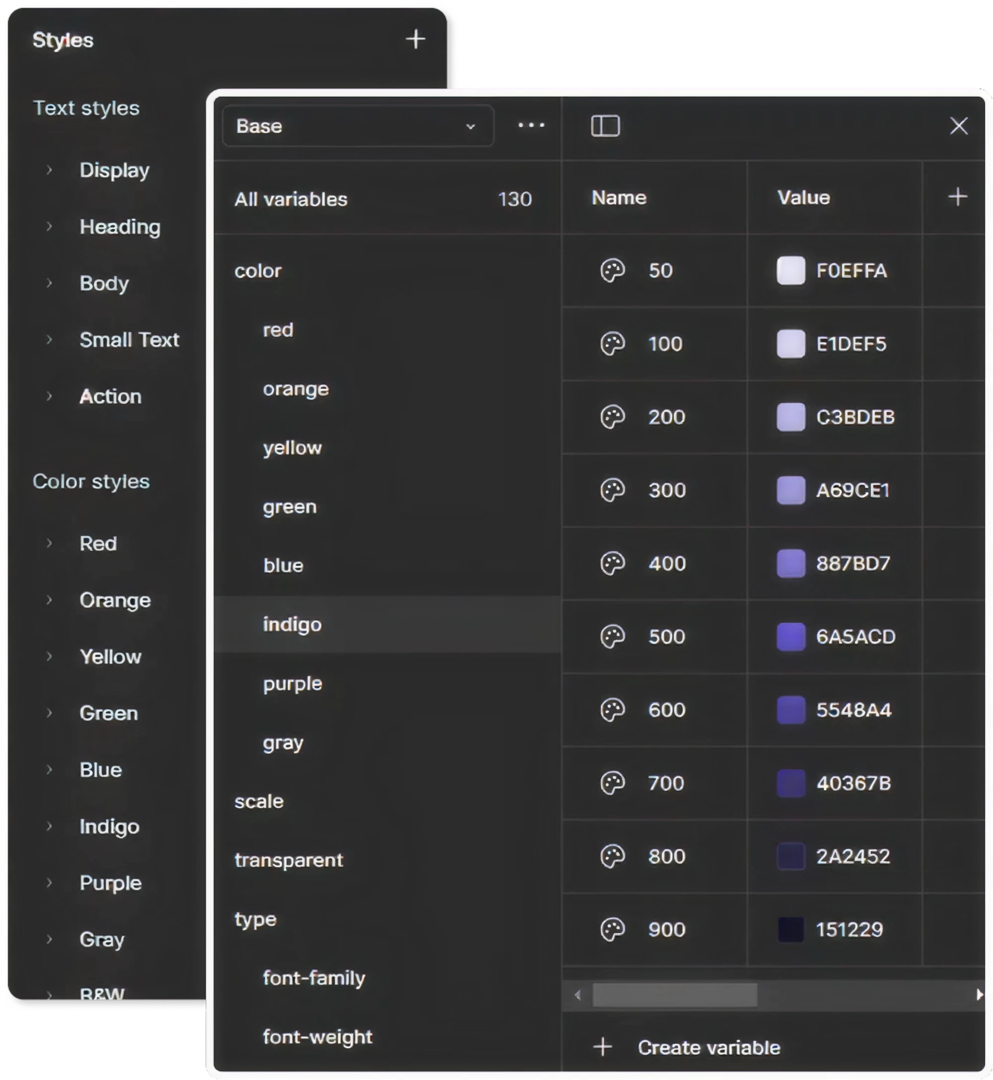 The system supports both light & dark themes using a token-based theming layer. Semantic tokens map core visual styles to each theme—allowing seamless switching and consistent experiences across modes with minimal rework.